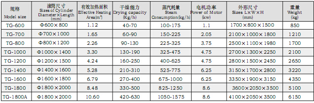 以蒸汽或導熱油為熱源,受熱面積大,熱效率高,加熱均勻。干燥速率大,筒壁上濕料膜的傳熱與傳質過程由里向外方向一致,溫