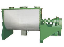 該機型由容器、螺旋攪拌葉片和傳動部件組成;螺旋葉片一般做成雙層或三層,外層螺旋將物料從兩側向中央匯集,內層螺旋將物料從中央向兩側輸送,形成對流混合。容積可做成圓形,以便夾套用于反應、干燥。特點:
