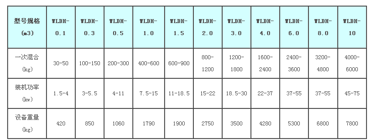 螺帶混合機一般用于粘性或有凝聚性的粉粒體的混合以及粉粒體中添加液體及糊狀物料的混合,同時由于粘性物料清洗困難的特點,適用于產量大、不經常更換品種的場合混合。技術參數: