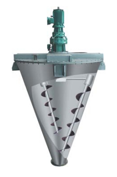 由螺旋的公 、自轉使物料在錐體內產生復合運動,主要產生四種運動形式:1. 螺旋沿壁公轉,使物料沿錐壁作圓周運動;